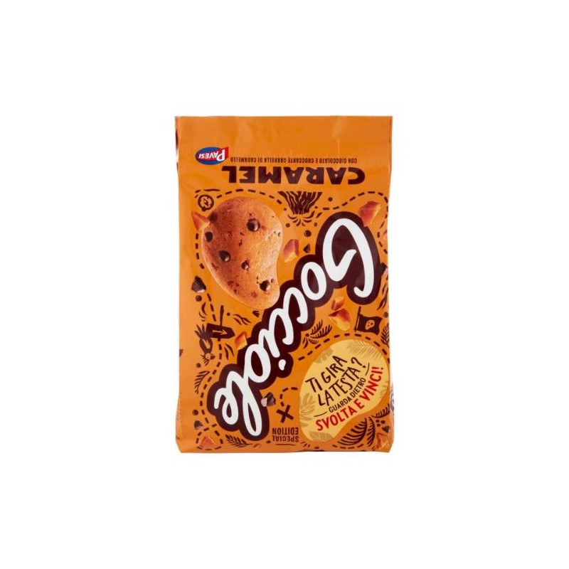 Ingredienti: farina di frumento, cioccolato 13,4%* (zucchero, pasta di cacao, burro di cacao, cacao magro, emulsionante: lecitina di soia), zucchero, oli vegetali (girasole, mais, colza, soia), granella di caramello 4,7%* (zucchero, sciroppo di glucosio, burro, panna), burro, caramello al burro salato 0,8%* [sciroppo di glucosio-fruttosio, latte condensato zuccherato, burro salato, acqua, zucchero, emulsionante: lecitine (soia), sale], agenti lievitanti (carbonato acido di sodio, carbonato acido d’ammonio), sale, aromi.