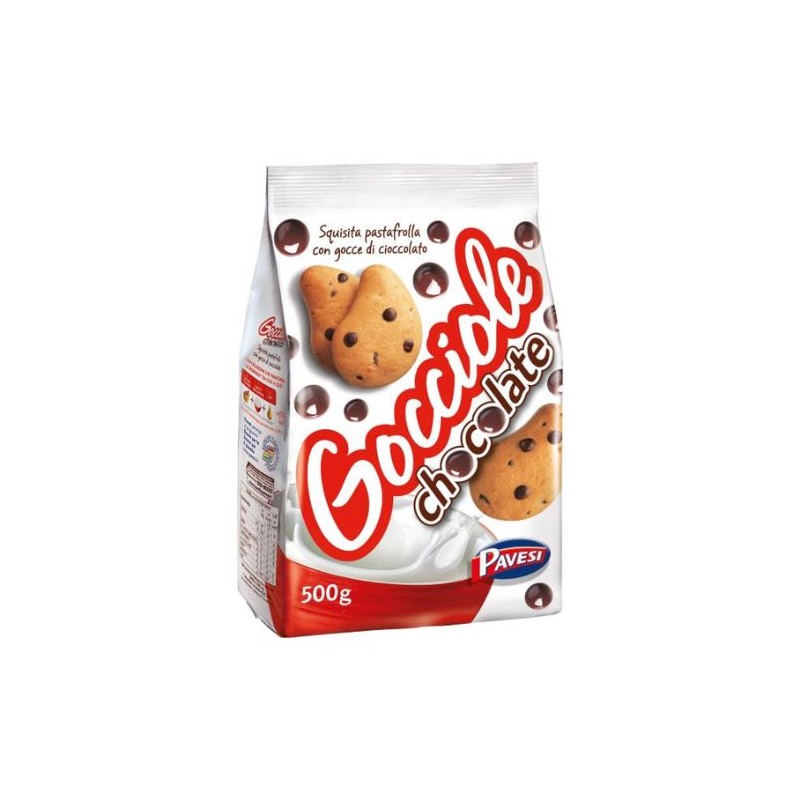 Gocciole Chocolate Squisita Pastafrolla e tante gocce di Cioccolato per partire con più gusto Comincia al meglio la giornata con tutto il Gusto e l'Energia delle Gocciole Pavesi! Una pioggia di tante gocce di cioccolato fondente in una squisita pastafrolla friabile: questo è il segreto delle Gocciole Pavesi. Tutte le Gocciole Pavesi sono senza olio di palma. Scegli le vere Gocciole! Una colazione che trasforma la giornata "da così a così": 3 Gocciole Chocolate + 1 Tazza di latte parzialmente scremato (125 ml) + 1 Pera (150 g) = 1230 kJ/294 kcal