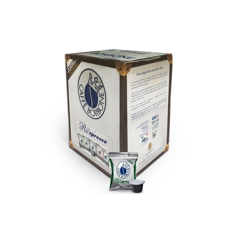 La confezione contiene 50 cialde di caffè Borbone Deca linea Respresso compatibili con sistema Nespresso.