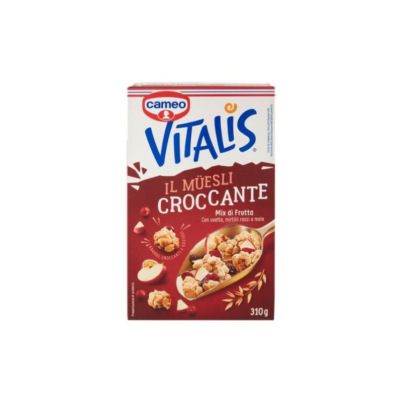 Inizia la giornata al meglio con il Vitalis Müesli Croccante Mix di Frutta: croccantissimi agglomerati tostati di fiocchi d'avena integrali con mirtilli rossi, uvetta, mele e maracuja.