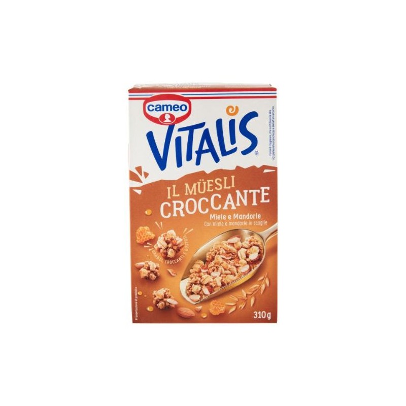Inizia la giornata al meglio con il Vitalis Müesli Croccante Miele e Mandorle: croccantissimi agglomerati tostati di fiocchi integrali d'avena con mandorle e miele.Dorati agglomerati croccanti di fiocchi d'avena particolarmente grandi e gustosi grazie allo speciale processo di tostatura.49% di fiocchi integrali d'avena.Ricco di fibre.