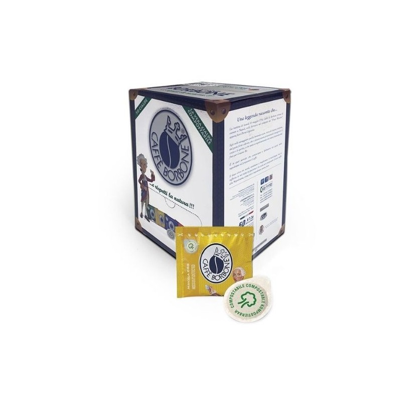 La confezione contiene 50 cialde compostabili in carta standard ESE ø 44.