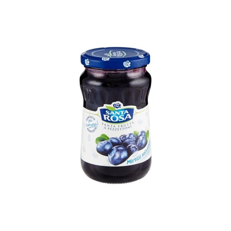 Mirtilli, Zucchero, Sciroppo di Glucosio-Fruttosio, Gelificante: Pectina, Correttore di acidità: Acido citrico.