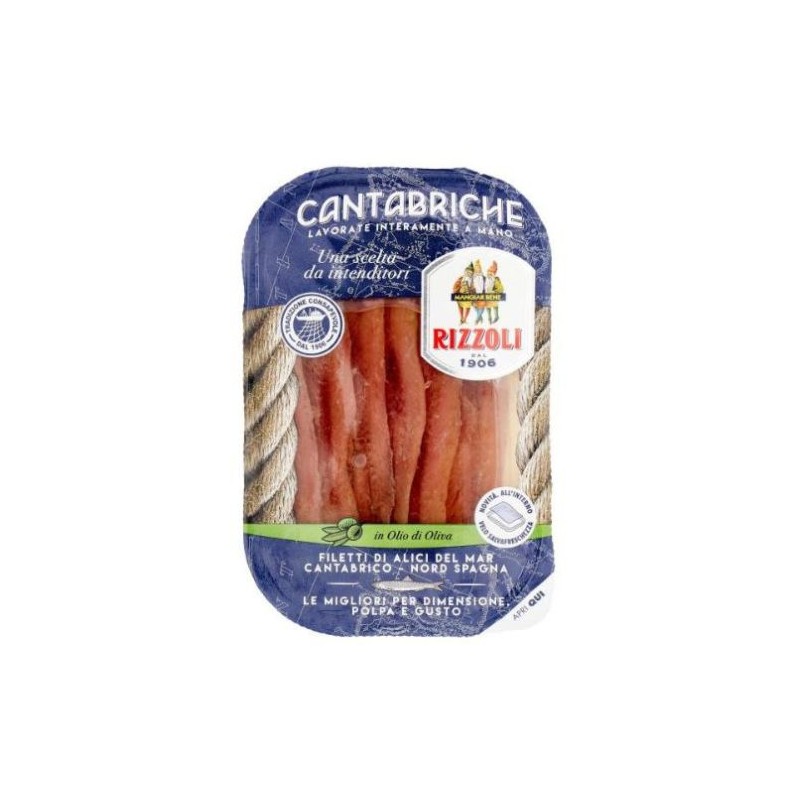 Filetti di alici in olio di oliva Rizzoli 40 gr. Gustosi e appetitosi.
