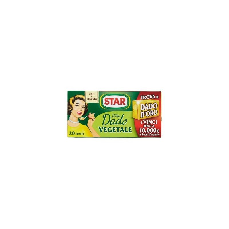 Sale iodato (48,5%) (sale, iodato di potassio 0,005%), Grasso vegetale di palma, Esaltatore di sapidità: glutammato monosodico, guanilato disodico e inosinato disodico, Estratto per brodo, Verdure 4,3% (cipolla 1,9%, carota 1%, prezzemolo 0,5%, patata 0,3%, porro 0,2%, pomodoro 0,1%, sedano 0,1%, spinacio 0,1%, aglio 0,1%, Aromi (con sedano), Zucchero, Semi di sedano, Spezie, Può contenere tracce di: latte, soia, pesce e uova