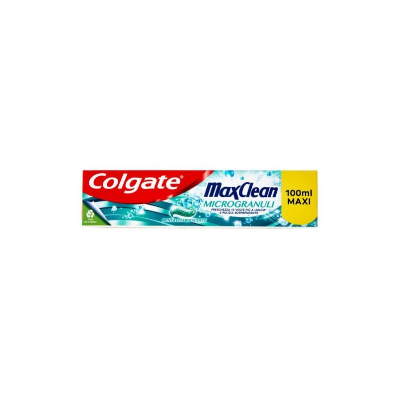 Colgate Max Clean Microgranuli con tecnologia Smart Foam penetra fra i denti e attorno alle gengive. I suoi microgranuli minerali privi di plastica puliscono i denti offrendo una sensazione piacevole.