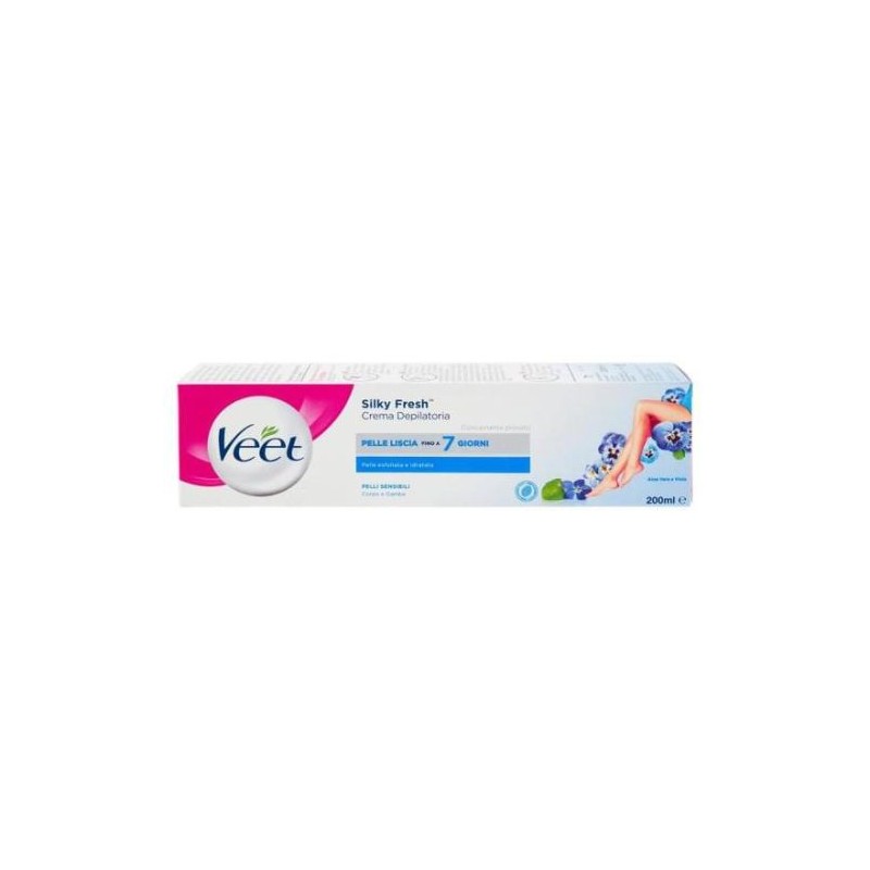 La crema depilatoria Veet, ora con tecnologia Silky Fresh, idrata la pelle fino a 24 ore ed è clinicamente provato che garantisce una pelle liscia fino a 7 giorni.