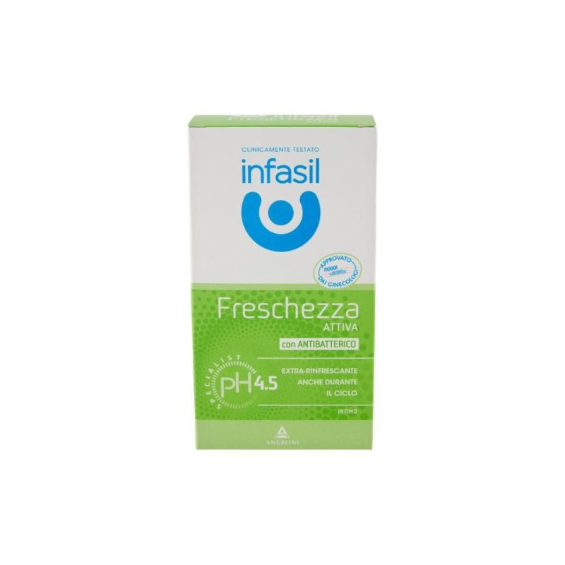 Arricchito con estratto di calendula e con la sua formula a pH lievemente acido 4.5 Infasil Freschezza Attiva aiuta a contrastare la formazione del cattivo odore e lascia una piacevole sensazione di freschezza. Infasil Intimo Freschezza Attiva deterge delicatamente,è ben tollerato anche da soggetti con piccole sensazioni di discomfort e da donne in fase mestruale.