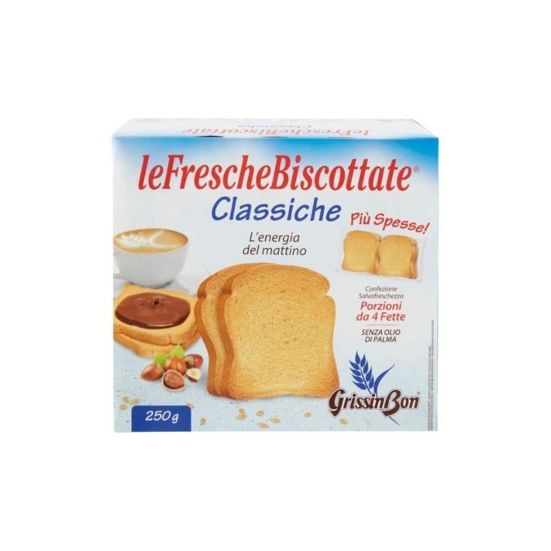 Sempre friabili e croccanti, nuova ricetta, senza olio di palma. Confezione esclusiva porzioni da 4 fette. Fonte di iodio. Confezione 250 gr