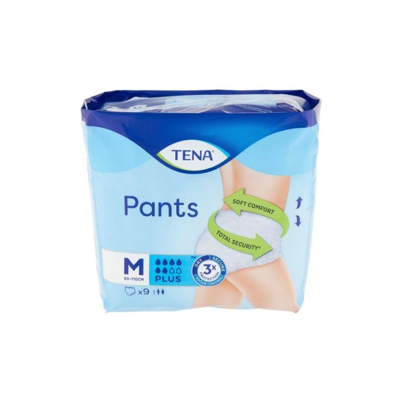 Mutandina assorbente elasticizzata monouso, simile alla normale biancheria intima, per incontinenza da moderata a pesante.Sistema di elastici al giro gamba morbide e sicure.Doppia Zona di Assorbenza Tessuto traspirante Tena Pants offre discrezione,comfort e Tripla Protezione da perdite,odori e sensazione di bagnato sulla pelle,per rimanere asciutti e sicuri tutto il giorno.Conf. 9 pz