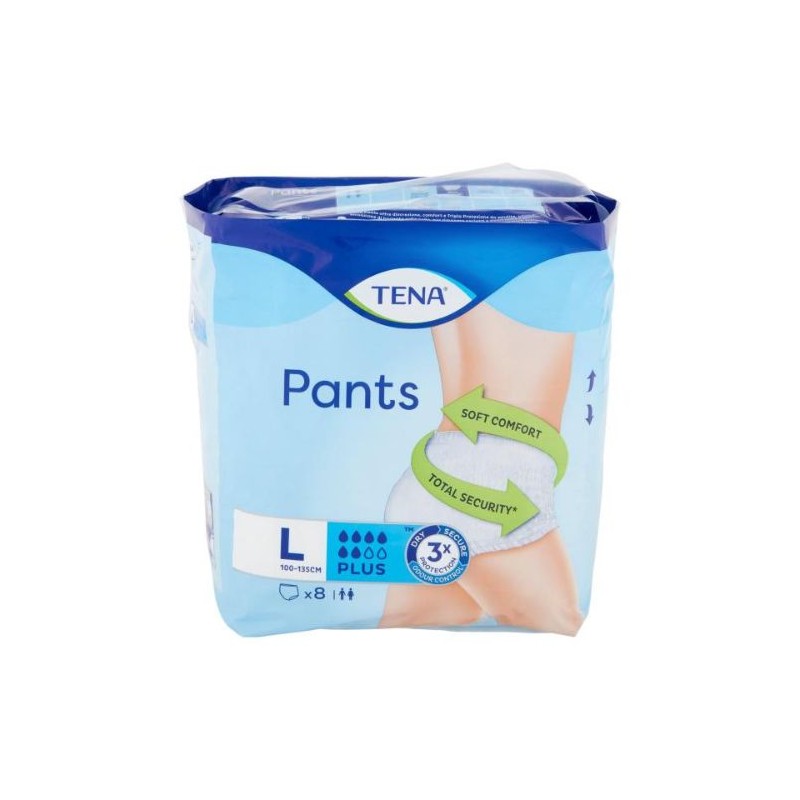 Mutandina assorbente elasticizzata monouso,simile alla normale biancheria intima,per incontinenza da moderata a pesante.Sistema di elastici al giro gamba morbide e sicure.Doppia Zona di Assorbenza Tessuto traspirante Tena Pants offre discrezione,comfort e Tripla Protezione da perdite,odori e sensazione di bagnato sulla pelle. Conf. 8 pz
