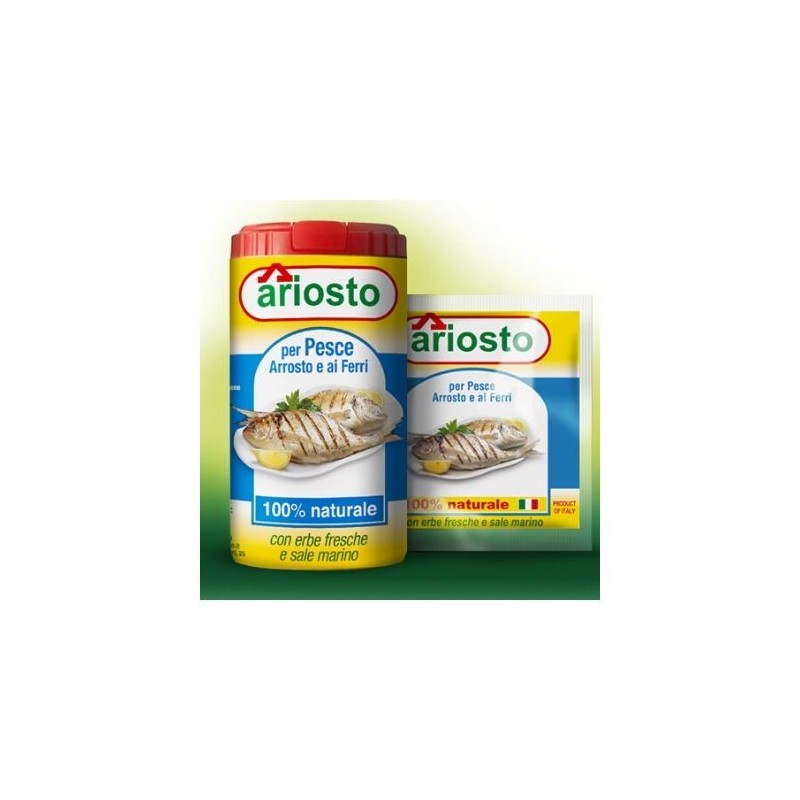 Ariosto per pesce arrosto e ai ferri con sale iodato è particolarmente indicato per ogni piatto di pesce cucinato alla griglia e al forno. Il sale marino iodato della ricetta, unito alle erbe più adatte al pesce quali prezzemolo e alloro, ne fanno il miglior mix per ogni preparazione. Per risultati eccellenti, su ogni tavola.