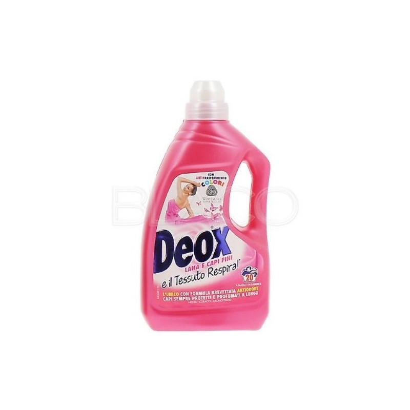 Istruzioni per l'uso: Deox Capi Delicati è indicato per tutti i capi delicati, anche lana e seta, e gli indumenti intimi, sia a mano che in lavatrice. La sua formula specifica, arricchita con enzimi, previene lo stingimento dei colori (risultati visibili dopo 8 lavaggi), la degenerazione delle fibre e l'antiestetica formazione dei pelucchi (azione anti-pilling). Inoltre evita il trasferimento dei colori da un capo all'altro. Verificare sempre sull'etichetta del capo se può essere lavato in acqua, in lavatrice e a quale temperatura. Consigliamo comunque di usare acqua fredda o tiepida: 30°C per capi in lana, 40°C per capi sintetici. Attenzione: Nel caso di capi colorati nuovi, in particolare se di cotone, si può verificare una naturale perdita di colore; per questo di consiglia per le prime volte di lavare i capi colorati nuovi a mano, per verificare la stabilità intrinseca dei colori. In lavatrice: Controlla sui capi le indicazioni per il lavaggio, scegliendo sempre le temperature più basse, senza eccedere nelle dosi. Utilizzare i programmi specifici per lana e delicati, rispettando i carichi di bucato indicati per non danneggiare gli indumenti. A mano: Versa il prodotto in acqua fredda prima di immergere i capi e lasciali in ammollo per alcuni minuti.