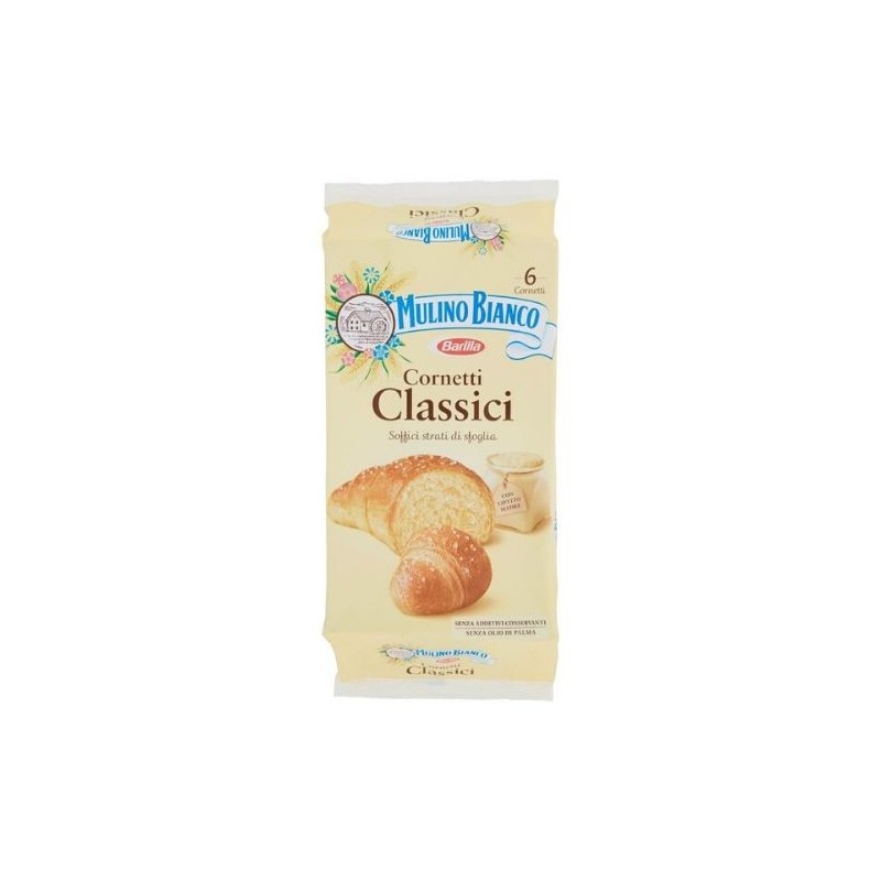Cornetti soffici di pasta sfoglia.Con lievito madre,senza additivi conservanti,senza olio di palma.Confezione 240 gr