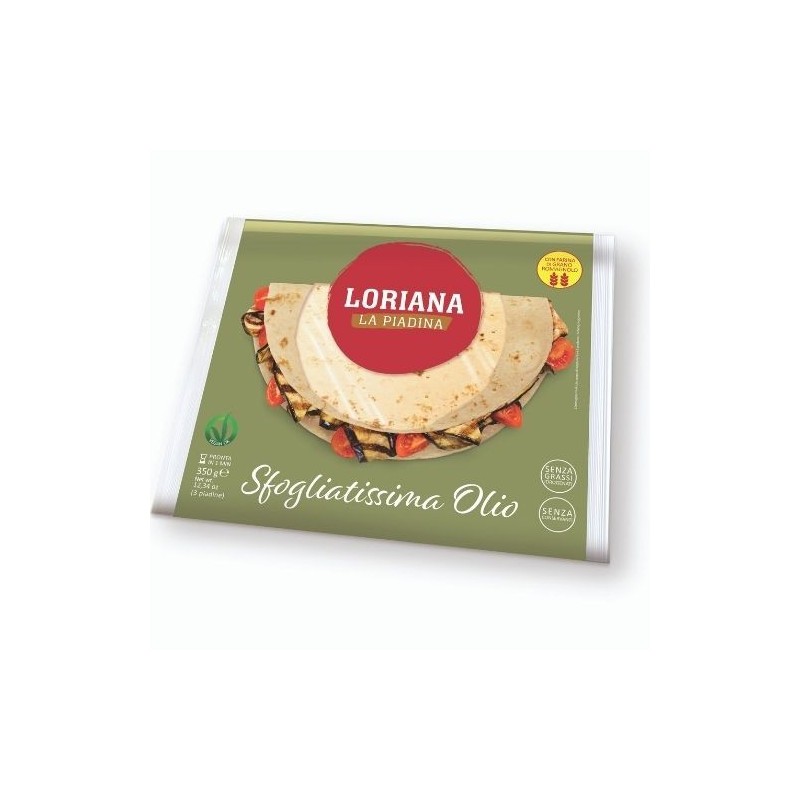 La Sfogliatissima Olio è la piadina soffice, morbida, con tutto il gusto e il sapore autentico di Loriana.Confezione: 350 g – 3 Piadine