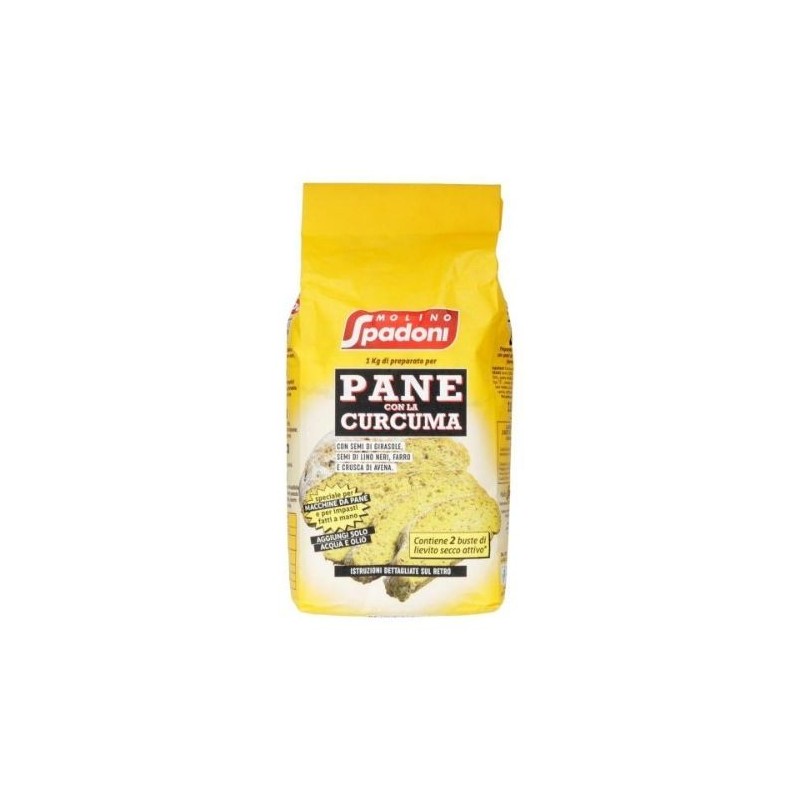 Preparato per Pane con la Curcuma con semi di girasole, semi di lino neri, farro e crusca di avena. Speciale per Macchine da Pane e per impasti fatti a mano. Aggiungi solo acqua e olio.
