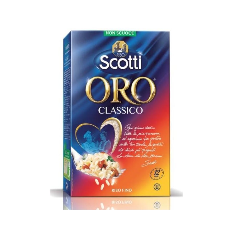 L'Oro Classico, ottenuto da un'eccezionale tecnologia di parboilizzazione, è un riso versatile, che non scuoce, dall'aspetto ambrato e cristallino. Ideale per tutti i tipi di preparazione: dai risotti alle insalate, dalle minestre ai timballi, piatti perfetti e sempre al dente.