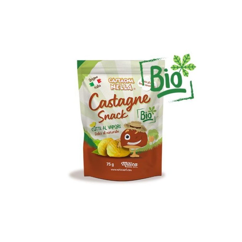Le castagne snack NELLA cotte al vapore “BIO” sono uno spezza fame naturalmente dolce e pronto da gustare.Le materie prime utilizzate hanno origine Italia e derivano da colture biologiche, selezionate per garantire un prodotto di alta qualità e molto nutriente, sono fonte di potassio e fibre, hanno un basso contenuto di grassi saturi, non contengono glutine.