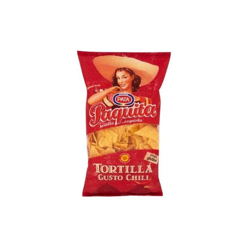 Snack fritto a base di farina di mais gusto chili. Confezione 400 gr