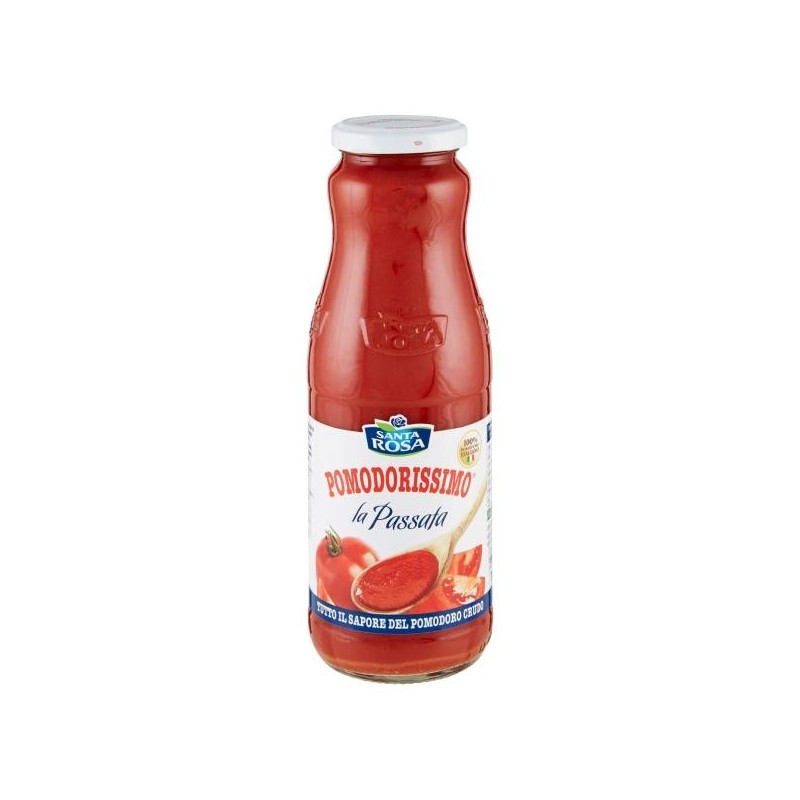 La Passata Pomodorissimo, una passata classica dalla consistenza omogenea e vellutata, ideale per sughi semplici e dal sapore vero di pomodoro crudo italiano