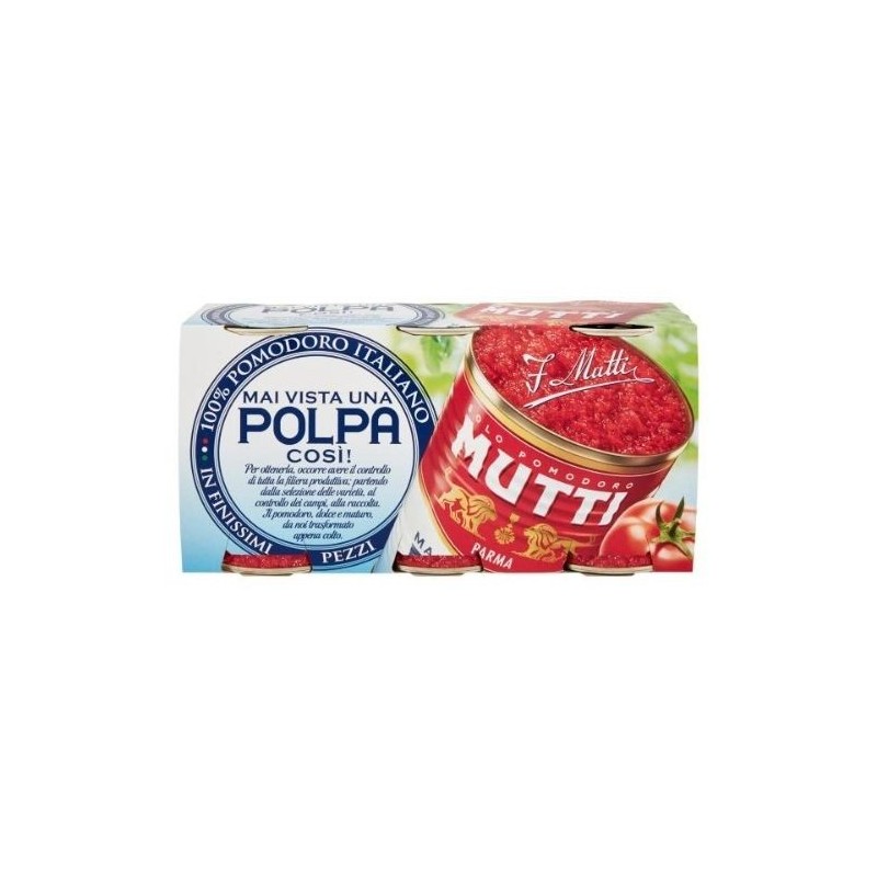 Mai vista una polpa così! Per ottenerla, occorre avere il controllo di tutta la filiera produttiva; partendo dalla selezione delle varietà, al controllo dei campi, alla raccolta. Il pomodoro, dolce e maturo, da noi trasformato appena colto. Solo pomodoro italiano, rosso, dolce, maturo e senza pezzetti gialli e verdi. Ecco perché la Polpa Mutti è diversa fin dal primo sguardo: corposa, invitante e profumata. All'assaggio il piacere continua nel suo sapore delicato di pomodoro fresco.