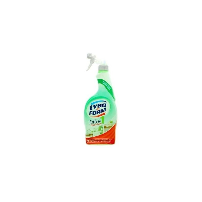 Lysoform Tutto in 1 Pulisce e disinfetta le superfici lavabili Lysoform Tutto in 1 è un detergente disinfettante indicato per le superfici lavabili della casa. La sua formula senza risciacquo pulisce in cucina e in bagno e in più disinfetta. Non danneggia i metalli.Confezione 750 ml