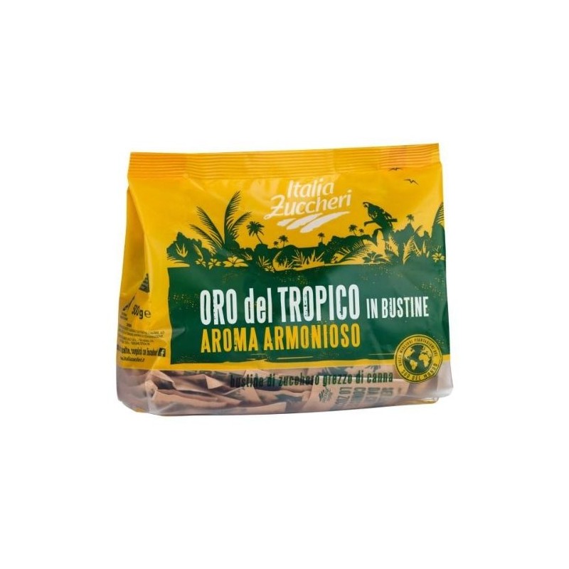 Il gusto armonioso e delicato dello zucchero di canna Oro del Tropico lo rende particolarmente indicato per la dolcificazione del caffè perché non ne copre l'aroma ed il profumo. Gli zuccheri sono una componente fondamentale dell'alimentazione perchè forniscono al corpo l'energia di cui ha bisogno.Confezione 100 bustine