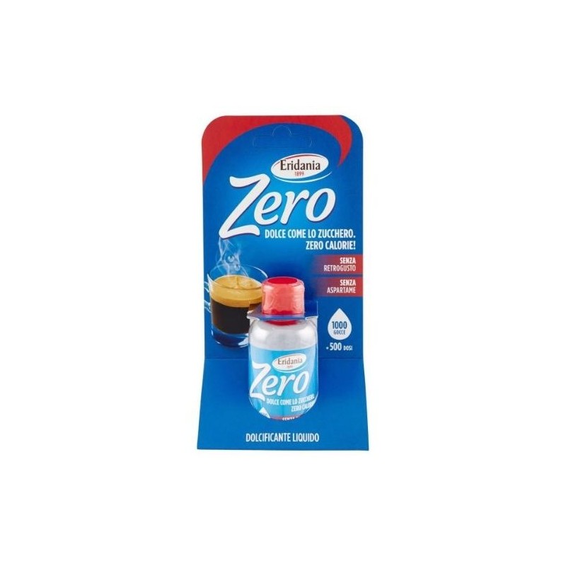 Dolce come lo zucchero. Zero calorie! Per concedere ad ogni giorno la dolcezza che merita, conta sull'esperienza di Eridania, da sempre sinonimo di qualità e tradizione. Zero calorie Zero, il dolcificante liquido di Eridania, è dolce come lo zucchero ma con un apporto calorico pari a zero e senza alcun retrogusto. Senza aspartame glutine e lattosio Eridania Zero è senza aspartame ed è adatto anche a chi è intollerante al glutine o al lattosio. Versatile Con la sua immediata solubilità è ideale per dolcificare qualsiasi bevanda, calda o fredda. Provalo anche nello yogurt e nelle macedonie o come ingrediente per i tuoi dolci. Pratico Il formato tascabile e il suo dosaggio a gocce, lo rendono pratico da utilizzare in qualsiasi occasione. Portalo sempre con te. 2 Gocce = 1 Dose